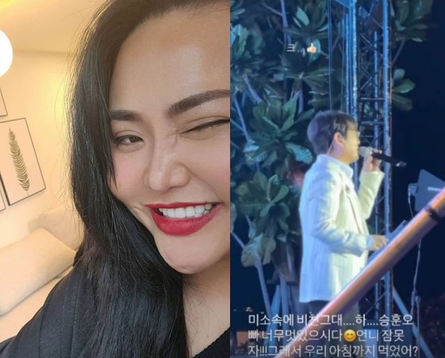 공개된 사진에는 태국 파타야에서 가수 신승훈의 무대를 찾은 모습이 답겼다. 이를 두고 홍선영은 “승훈 오빠 너무 멋있으시다. 언니 잠 못 자. 그래서 우리 아침까지 먹었어?”라고 전했다.