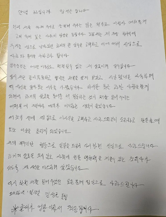 이후 임성근 세프는 자필로 사과문을 올리며 “오늘 저는 제가 가슴 한구석에 무거운 짐으로 남아이던 과거의 큰 실수를 고백하고 이에 대해 진심으로 사과와 용서를 구하고자 한다”고 말했다.