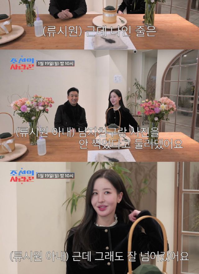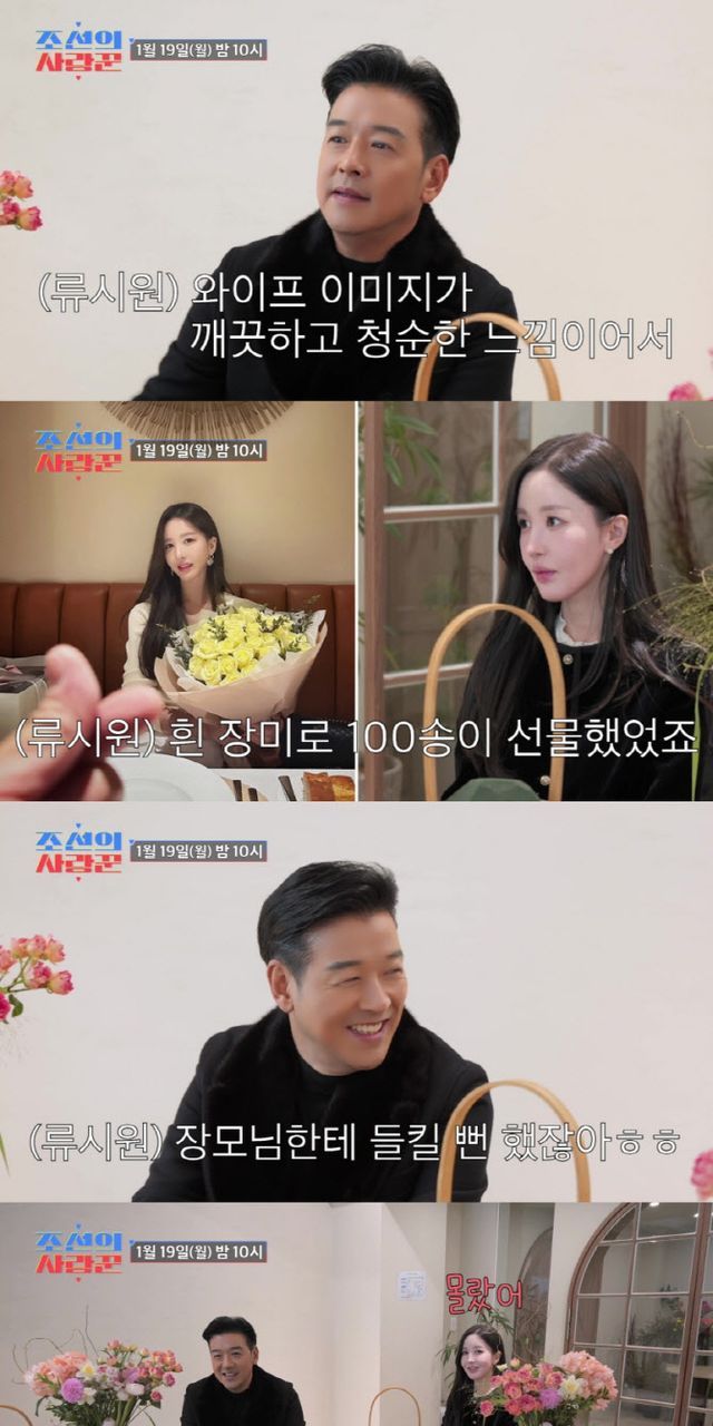 VCR에서 아내와 함께 나타난 류시원은 평소 아내에게 꽃과 편지를 자주 선물하는 로맨틱한 면모를 드러냈다. 그는 “연애 100일째 되는 날, 흰 장미 100송이를 선물했다. 와이프 이미지가 깨끗하고 청순해서, 빨간 장미보다는 흰 장미가 더 잘 어울렸다”고 회상했다. 이어 “장모님 (연애 사실을) 모르실 때인데, 딸의 집에 왔다가 장미를 보셨다”며 “누가 봐도 남자가 준 장미 아니냐”면서 연애가 들킬 뻔했던 아찔한 순간을 공유했다. 이에 류시원의 아내는 “(엄마에게) 남자친구 있다고 이야기했던 것 같다”면서도 상대가 ‘연예인 류시원’이라는 정체는 숨겼다고 당시 상황을 설명했다. 아내는 “(엄마에게) 남자친구랑 사진을 안 찍었다고 둘러댔다. ‘말이 되느냐’고 하셨지만 그래도 잘 넘어갔다”고 비밀 연애 시절의 풋풋한 에피소드를 전했다.