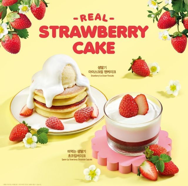 ‘생딸기 아이스크림 팬케이크’는 따뜻한 팬케이크 위에 딸기 시럽과 시원한 바닐라 아이스크림, 부드러운 플로팅 크림을 더해 풍부한 식감과 달콤하고 부드러운 맛이 조화를 이룬 메뉴다. ‘떠먹는 생딸기 초코컵케이크’는 초코 시트와 딸기잼, 딸기맛 크림, 플로팅 크림을 층층이 레이어링해 달콤함과 상큼함을 동시에 즐길 수 있는 디저트다.