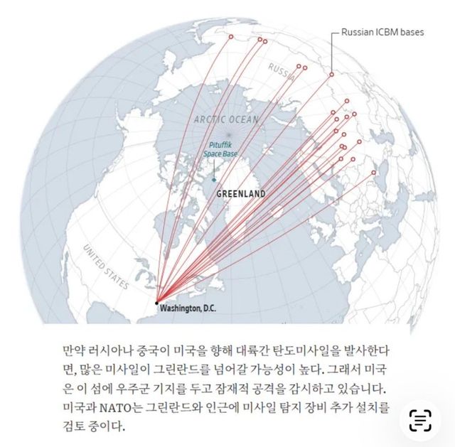 그린란드에 골든돔 만들면 러시아, 중국에서 날아오는 상당수 미사일을 선제적 방어 가능 하다네요.