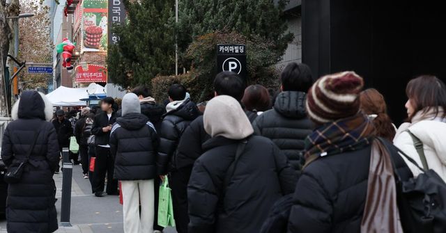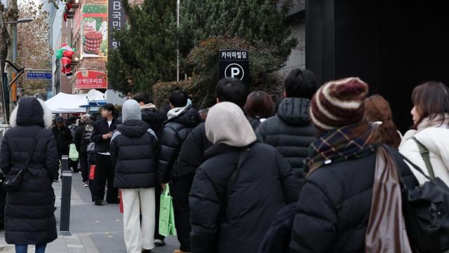 크리스마스를 이틀 앞두고 딸기시루가 출시된 지난달 23일 대전 중구 성심당 일대에 빵을 사려는 고객들이 차례를 기다리고 있다. / 뉴스1