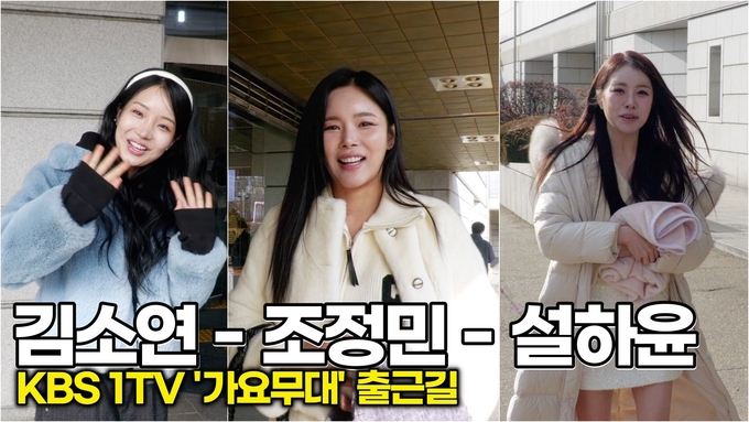 [뉴스인스타 양철수기자] 1월 19일(월) 오후, 서울시 영등포구 여의도 KBS 별관에서 진행되는 KBS 1TV '가요무대' 녹화를 위해 가수 김소연, 조정민, 설하윤이 방송국에 도착해 포즈를 취하고 있다.