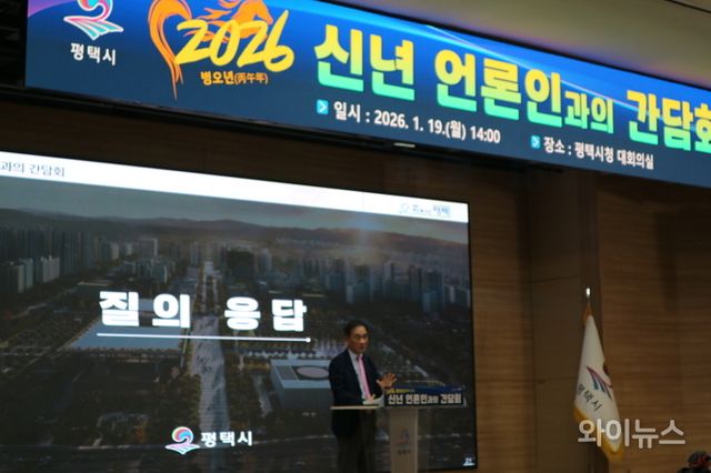 [와이뉴스] 정장선 평택시장이 19일 오후 시청 대회의실에서 2026 신년 기자회견을 열고 시정 전반을 브리핑했다.