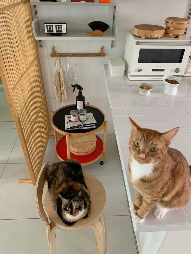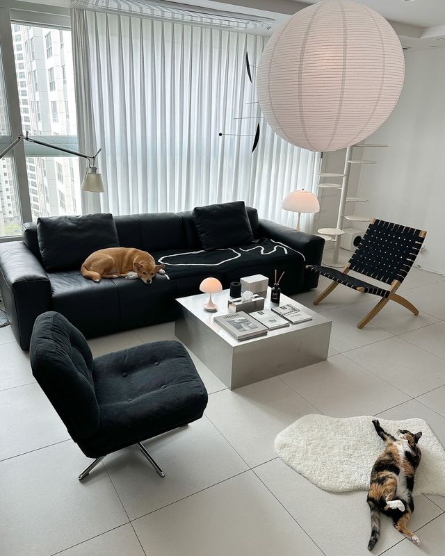 이 집으로 이사를 준비할 무렵에는 강아지들과 함께 살고 있었어요. 하루 세 번 산책하는 강아지들을 위해 유동 인구가 많지 않고, 산책로가 잘 조성된 지역을 선택했죠. 강아지들이 지내기 좋도록 거실이 넓은 집을 찾았어요. 거실이 넓다 보니 강아지뿐 아니라 고양이들이 살기에도 쾌적하더라고요. 볕이 잘 드는 오후에는 고양이들이 거실에서 일광욕을 즐겨요.