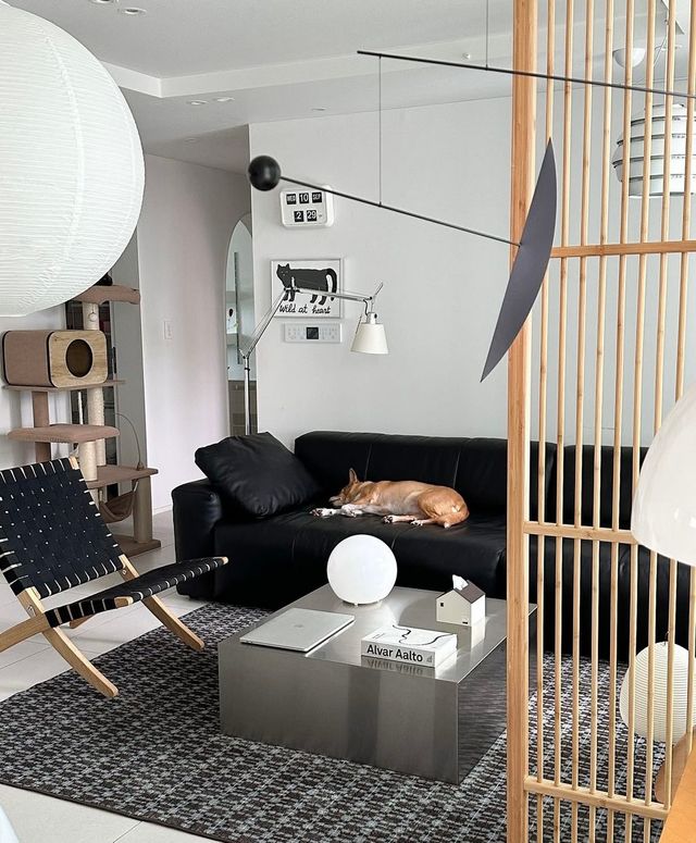 반려동물 용품이나 가구를 숨기지 않아요. 인테리어를 방해하지 않으면서도 반려동물에게 편안한 제품을 찾죠. 저와 반려동물의 일상이 어우러지도록 하는 편이에요. 예를 들어, 제가 일하는 서재 책상 아래에는 강아지 침대를 두었어요. 제가 일하는 동안 강아지가 제 곁에서 안정감을 느끼며 쉴 수 있도록이요.