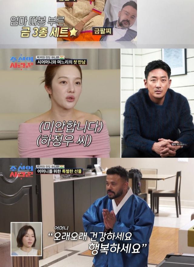 럭키의 본가에서는 어머니의 따뜻한 인도식 환영 인사가 이어졌다. 럭키 부부가 준비한 각종 금 장신구에 화답하듯, 어머니는 보석이 박힌 황금 팔찌 4개와 막내며느리를 위해 30년간 간직한 황금 예물 세트를 건네 감동을 자아냈다.