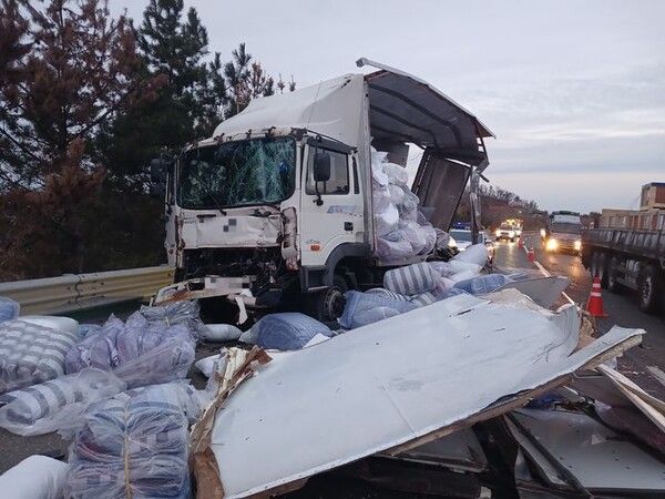 뉴시스 보도에 따르면, 경찰에 따르면 사고 당시 60대 운전자가 몰던 4.5톤 화물차가 2차로를 주행 중 앞서가던 4.5톤 화물차와 25톤 화물차를 잇달아 추돌했다. 다행히 인명 피해는 발생하지 않았다.