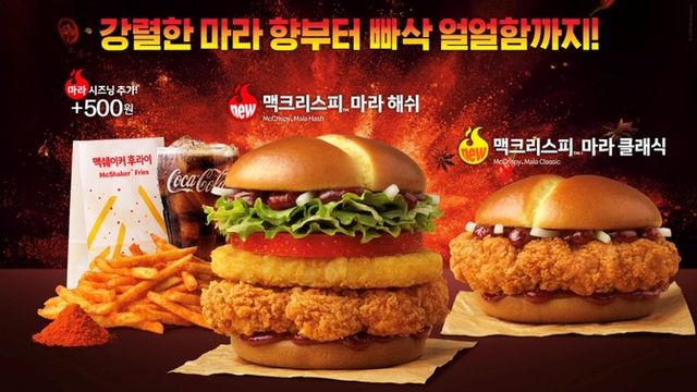 한국맥도날드가 강렬한 마라 맛을 담은 '맥크리스피 마라 버거' 2종을 출시했다. 이번 신메뉴는 '맥크리스피 마라 해쉬 버거'와 '맥크리스피 마라 클래식 버거'로 구성됐다.