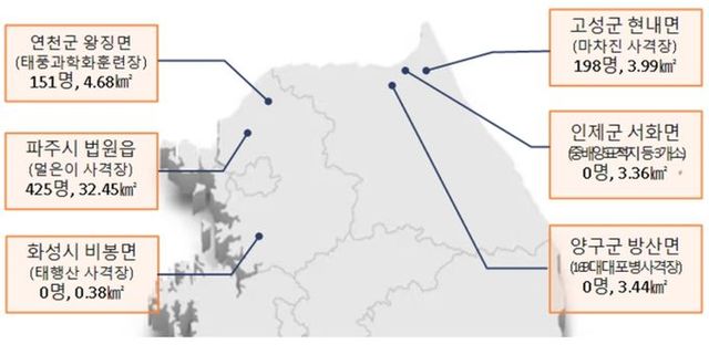 지정·고시 예정 지역은 파주시 멀은이 사격장, 고성군 마차진 사격장, 연천군 태풍과학화 훈련장 등으로 총 48.3 ㎢의 소음대책지역에 약 770명의 주민이 보상을 받을 예정이다.