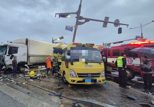 사고로 인해 버스에 버스에 타고 있던 안전지도사 A(40대·여)씨 등 6명이 중상을, 버스기사 B(30대)씨 등 7명은 경상을 입고 인근 병원으로 옮겨졌다.