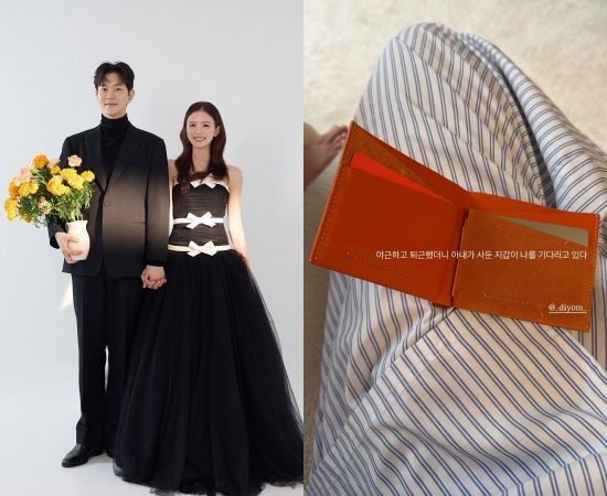 사진 속에는 김지영이 만든 정성스러운 돼지수육과 개성 강한 주황색의 지갑이 담겨 있다. 결혼식을 앞두고 알콩달콩 신혼 생활을 보내고 있는 두 사람의 근황이 눈길을 끈다.
