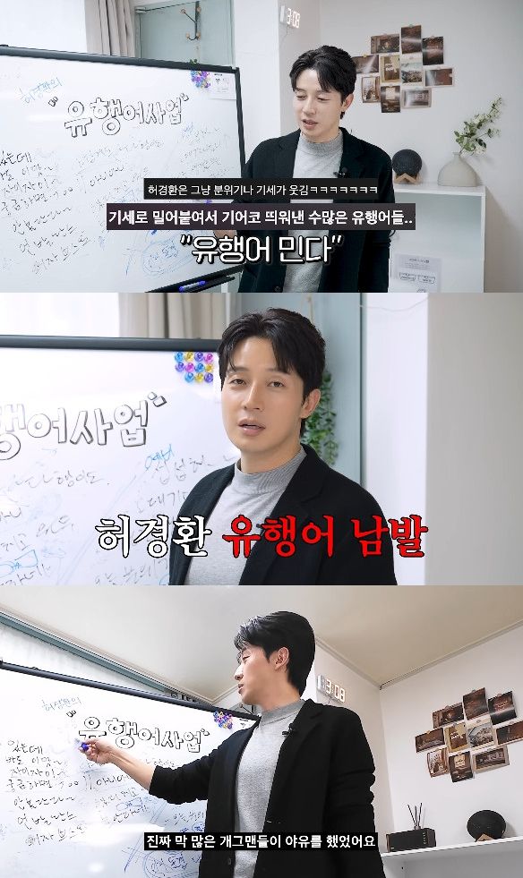 19일 유튜브 채널 '궁금하면 허경환'에 '여러분 저 이리 둘낍니까!! 유행어 만들어드립니다' 영상이 공개됐다. 이날 허경환은 최근 '유행어 부자'로 화제가 됐음을 언급하며 "내 유행어가 몇 개인지 정리를 좀 해 봐야겠다"며 카메라 앞에 나섰다.