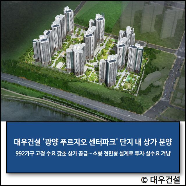 대우건설(047040)은 전라남도 광양시 광양읍 용강리에 위치한 '광양 푸르지오 센터파크'의 단지 내 상가를 오는 24일 분양할 예정이라고 20일 밝혔다.