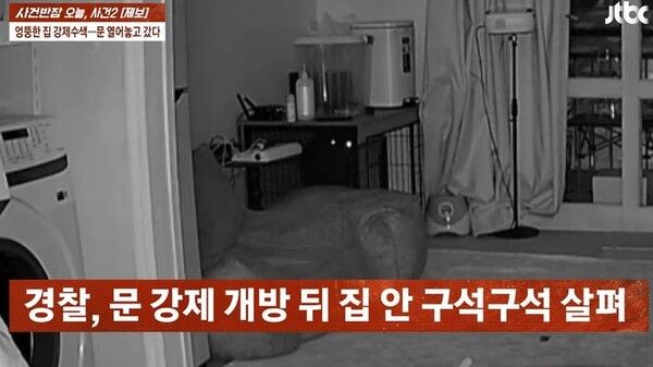 홈캠 영상을 확인한 결과, 경찰이 현관문을 부수고 집에 들어와 구석구석 살펴보는 모습이 담겼다.