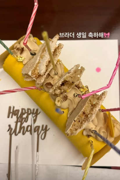 가장 먼저 시선을 사로잡은 것은 감각적인 디자인의 노란색 롤케이크다. "브라더 생일 축하해"라는 문구와 함께 꽂힌 수많은 초는 남동생을 향한 누나 고현정의 든든한 마음을 보여준다.