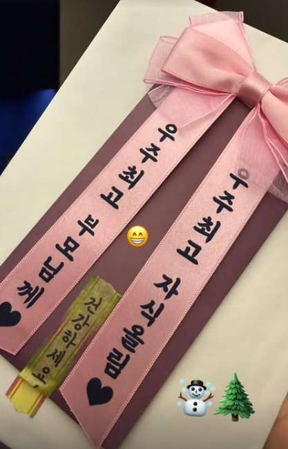 이어 공개된 사진에서는 부모님께 전하는 메시지가 담긴 리본이 등장했다. "우주 최고 부모님께, 우주 최고 자식이 올림"이라는 재치 있는 문구는 여배우 고현정이 아닌, 애교 많은 딸로서의 면모를 엿보게 한다.