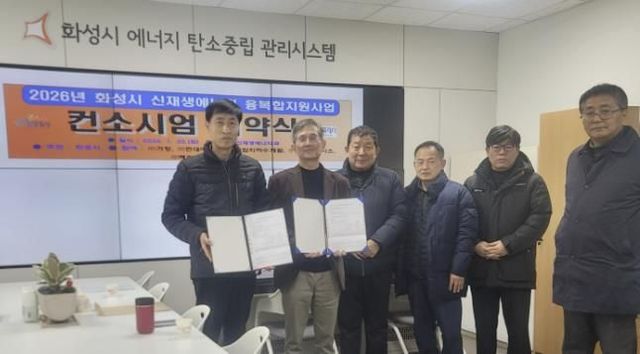시는 지난 20일 화성종합경기타운에서 2026년 신재생에너지 융복합지원사업 추진을 위한 ‘신재생에너지 융복합지원사업 컨소시엄 협약식’을 열고, 컨소시엄 참여기관별 역할과 구성, 사업 세부내역, 사후관리 등에 대해 협약을 체결했다.