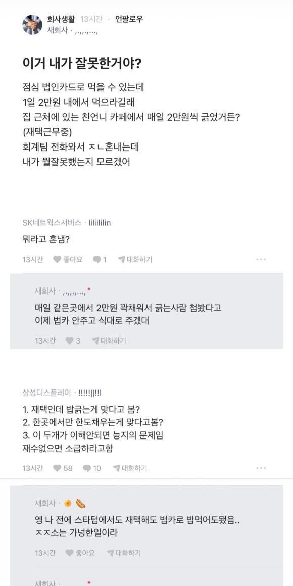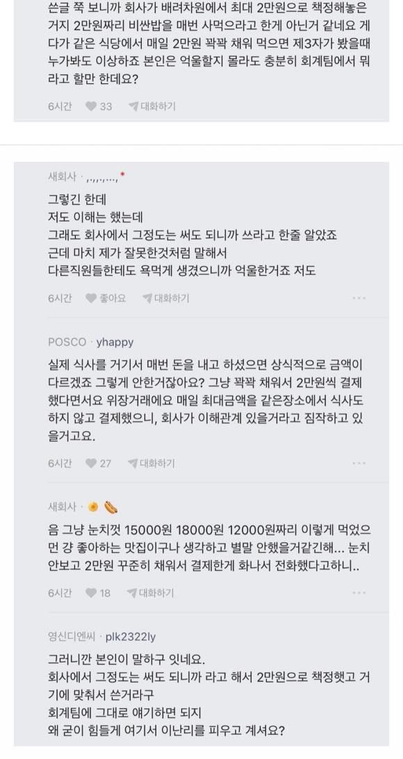근데 식대 2만원이면 많이 주는거기는 한데, 한도를 줬으면 쓰라고 준 복지인데 그걸 어디서 사먹든지는 따질 수 있나 싶은데요. .