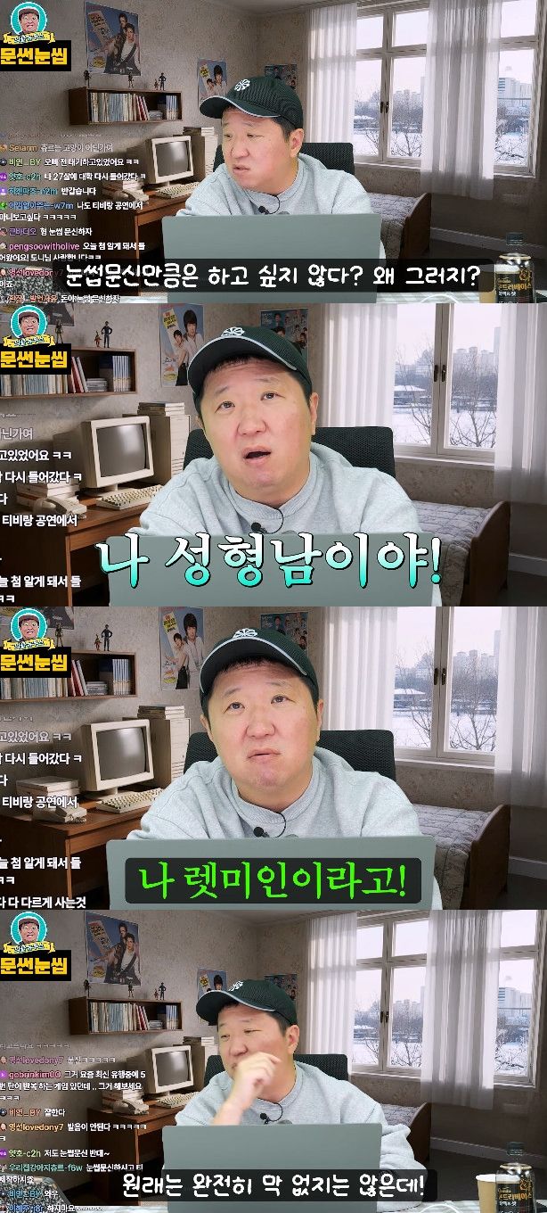 이어 한 시청자는 "형, 눈썹 문신 하자"라며 정형돈에게 눈썹 문신을 권유했다. 정형돈은 "나 이상하게 눈썹 문신만큼은 하고 싶지 않다. 나 성형남이야. 나 렛미인인데 이상하게 눈썹문신은 못 하겠다"고 털어놓았다.