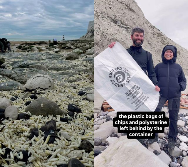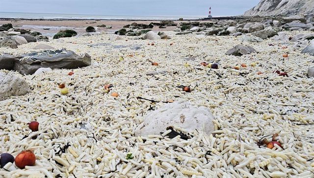 18일(현지 시간) BBC 등 외신에 따르면, 최근 영국 남부 서섹스주 이스트본 인근 해변에 엄청난 양의 감자튀김 봉지가 밀려들었다.