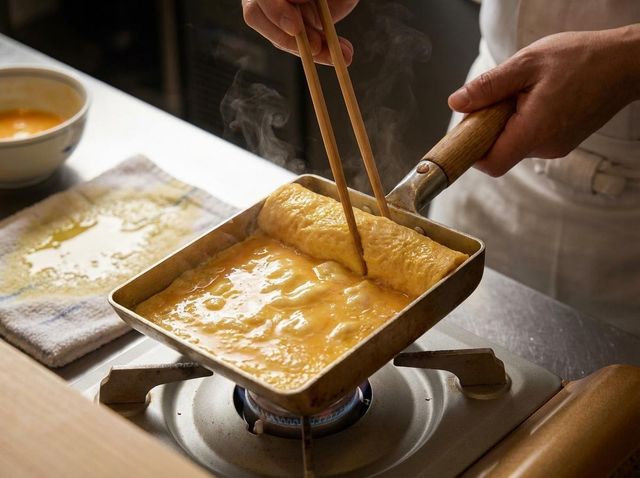 조리는 순서가 단순하다. 먼저 물에 혼다시를 녹이고 설탕과 맛술을 함께 섞는다. 이 양념물을 계란물에 붓고 충분히 섞는다. 체에 한 번 걸러주면 공기방울이 줄어들어 단면이 훨씬 고와진다. 팬은 반드시 약불로 유지한다. 혼다시와 설탕이 들어간 계란물은 일반 계란말이보다 빨리 색이 난다. 기름을 두른 뒤 키친타월로 닦아 얇게 코팅한 상태에서 계란물을 조금씩 부어 반쯤 익었을 때 말아주는 과정을 반복한다.