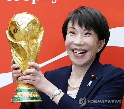일본 총리실은 지난 19일 사회관계망서비스(SNS)를 통해 사나에 총리가 국제축구연맹(FIFA) 월드컵 트로피 투어를 맞아 일본에 도착한 월드컵 트로피를 들어 올리는 모습을 영상으로 공개했다.
