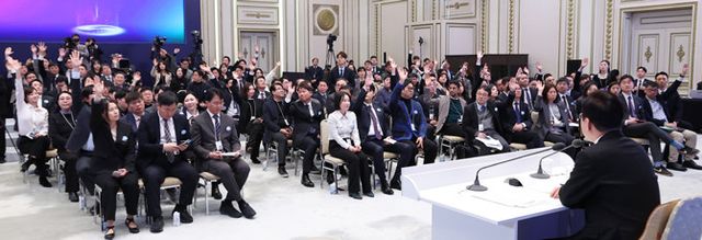 이 대통령은 "이 막중한 과제를 해결할 주역은 끊임없는 혁신으로 새로운 성장동력을 만들어 낼 스타트업·벤처기업"이라며 "이미 대한민국 기업들은 미국 CES에서 혁신상을 휩쓸 정도로 충분한 저력을 갖고 있다"고 했다.