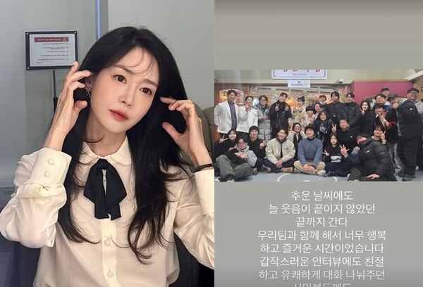 함께 공개한 사진에는 촬영 현장에서 제작진 및 출연진과 다정하게 포즈를 취한 모습이 담겼다.