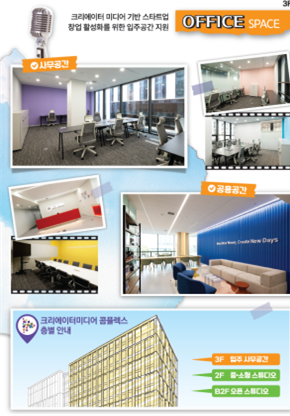 지난 2021년 서울역 인근에 개소한 크리에이터미디어 콤플렉스는 청년 기업들이 안정적으로 성장할 수 있도록 콘텐츠 제작 및 실시간 방송이 가능한 특화 제작 스튜디오와 독립 사무실 등을 제공하는 복합 공간이다. 미디어 스타트업의 투자 유치와 사업 확장을 위한 전문 상담을 진행하고 있다.