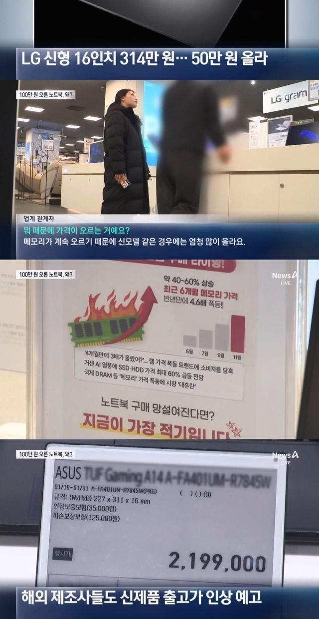 무려 가격이 100만원씩 폭등해버린 노트북 PC시장 상황