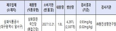 식품의약품안전처(처장 오유경)는 식품제조·가공업체인 ‘삼화식품공사(대구광역시 달서구 소재)’가 제조·판매한 ‘삼화맑은국간장(식품유형 : 혼합간장)’에서 3-MCPD가 초과 검출되어 해당 제품을 판매 중단하고 회수 조치한다고 밝혔다.