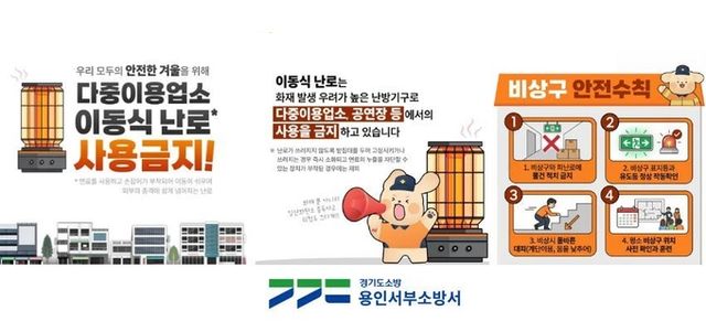 [와이뉴스] 용인서부소방서(서장 오은석)가 겨울철 한파로 난방 수요가 증가하는 시기를 맞아 카페·음식점·독서실·사우나 등 다중이용업소에서의 이동식 난로 사용 금지. 피난로·비상구 확보를 통한 안전한 대피 환경 조성을 위한 협조를 당부했다.