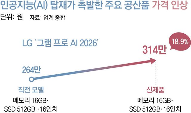TV, 로봇청소기, 냉장고 등 소비자들에게 친숙한 기존 가전도 ‘AI화’에 따른 가격 인상이 예상된다. 삼성전자는 이달 열린 ‘CES 2026’에서 구글의 생성형 AI 제미나이를 탑재한 냉장고 비스포크 AI 패밀리허브를 공개했다. 올해 나오는 130형 마이크로 적녹청(RGB) TV는 사용자와 상호 작용하는 TV 전용 AI 플랫폼 ‘비전 AI 컴패니언’을 탑재하기도 했다.