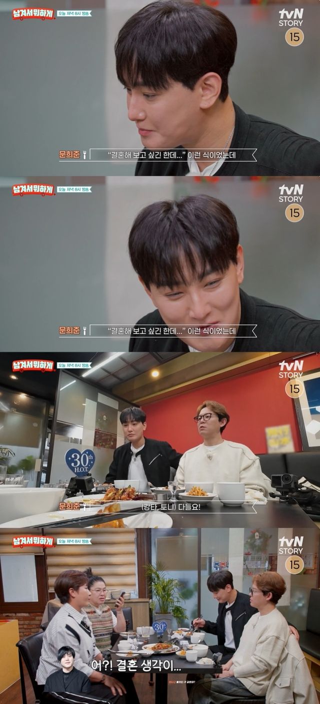 지난 21일 방송된 tvN 스토리 예능프로그램 ‘남겨서 뭐하게’에는 강타와 토니안이 게스트로 출연해 결혼 계획에 대한 이야기를 나눴다.