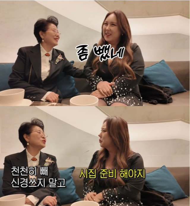 풍자는 “열심히 빼고 있다. 살이 좀 빠진 것 같냐”고 물었고, 선우용여가 “괜찮다”라고 답하자 “많이 빠졌다고 해주셔야죠”라고 받아쳐 웃음을 자아냈다. 이어 풍자는 “시집을 준비해야 한다”며 결혼을 언급했고, 선우용여에게 “그때 분명히 저한테 ‘너무 크다’고 했는데 다시 한 번 만져보시라”고 너스레를 떨었다. 선우용여는 “괜찮다. 좀 뺐네”라며 달라진 풍자의 체형을 인정했다.