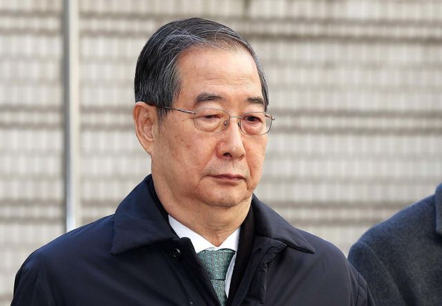 한덕수 전 국무총리가 21일 오후 서울 서초구 서울중앙지법에서 열린 내란 우두머리 방조, 내란 중요임무 종사 혐의 사건 1심 선고공판에 출석하고 있다. 이날 내란 중요임무 종사 혐의로 기소된 한 전 총리는 1심에서 징역 23년을 선고받고 법정구속됐다. / 뉴스1