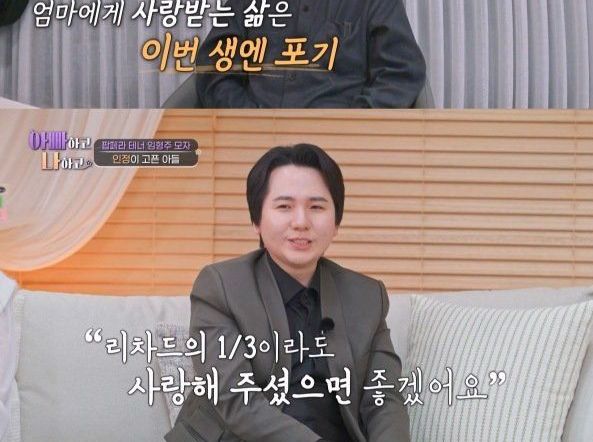 결국 3남1녀 중 장남인 임형주는 자신보다 16살 어린 셋째 ‘리차드’에게는 사랑꾼이면서도 자신에게는 야박한 어머니에 대한 불만을 터트렸다. 임형주 어머니는 “우리 리차드(셋째 아들) 같으면…”이라고 임형주와 대놓고 비교하며 극명한 온도차를 보였다. 이에 대해 임형주는 “제가 질투심이 있어서 서운할 때가 있다. 동생들이 원망스럽진 않다. 셋째, 넷째한테 엄마가 잘해주는 것처럼…그런 인생은 이번 생에는 포기다”라고 말해 안타까움을 자아냈다.