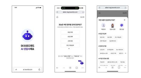 고객은 이번 AI 상담 서비스를 통해 요금 조회, 가입 신청, 상품 변경 및 결합 신청, 고장 진단 등 200여개의 자주 문의하는 업무를 상담원 연결 없이 24시간 간편하게 화면을 보며 처리 가능하다.
