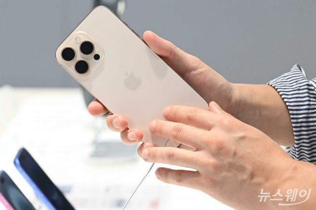 'SKT 아이폰16 얼리픽 파티'가 20일 오전 서울 마포구 머큐어 앰배서더 홍대 T팩토리에서 열린 가운데 고객이 이날 공식 출시된 애플의 아이폰16(iPhone16) 시리즈 모델을 살펴보고 있다. 사진=강민석 기자 kms@newsway.co.kr