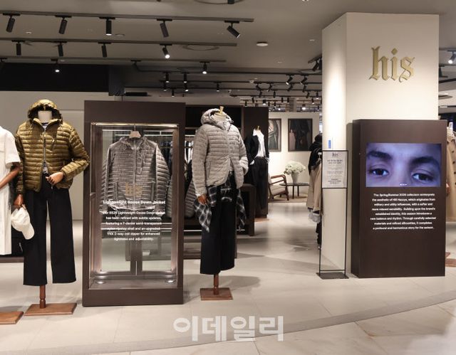 공간은 다크 우드와 톤 다운된 컬러를 활용해 절제된 컨템포러리 무드를 구현했고, 제품 중심의 진열로 브랜드 정체성을 강조했다. 봄 시즌용 경량 다운 재킷을 비롯해 재킷, 셔츠, 팬츠 등 핵심 아이템을 한자리에서 만나볼 수 있다.