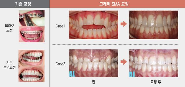 기존 금속 브라켓(치아 표면에 설치하는 철사로 된 고정 장치)이나 타사 투명교정장치 대비 아프지 않고 심미성을 잃지 않으면서도 교정력은 우수하다는 점이 그래피 SMA의 강점이다.