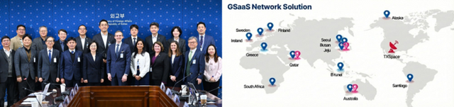 美 상무부 우주상업실장 韓 기업 간담회 단체사진(왼쪽) 및 컨텍 글로벌 네트워크 맵(오른쪽). ⓒ 컨텍