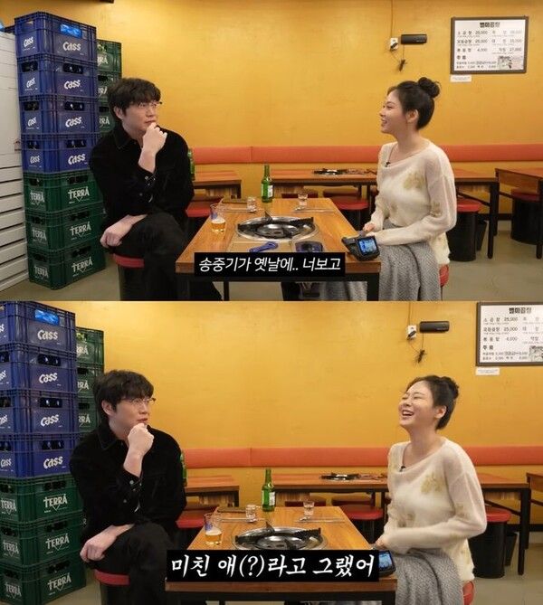 그는 "송중기가 옛날에 너 보고 '미친 애'라고 그랬다. 연기 너무 잘한다고. 장난 아니라고"라며 "중기가 그렇게 극찬하는 건 (드물다) 걔가 거짓말하는 애는 아니니까"라고 덧붙였다.