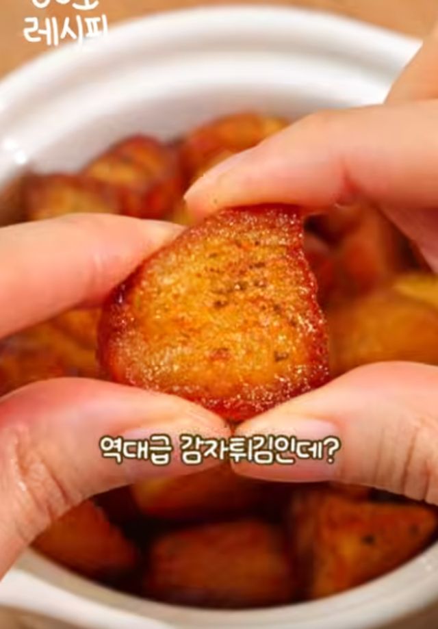 완성된 바삭하면서도 쫀득한 감자튀김 / 유튜브 '지현쿡'