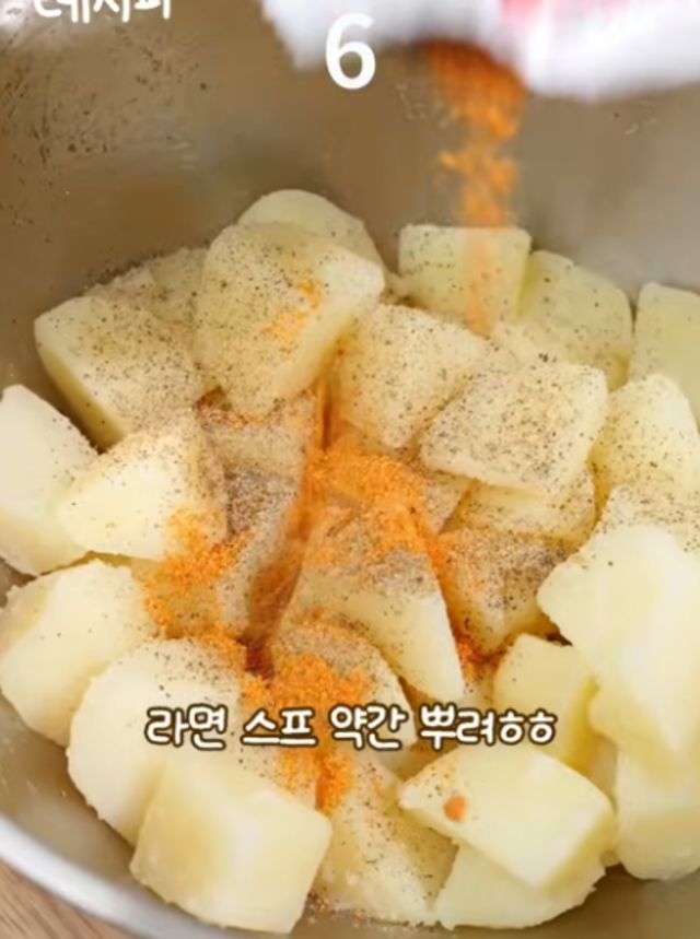 감자에 후추, 라면스프 뿌리는 모습 / 유튜브 '지현쿡'
