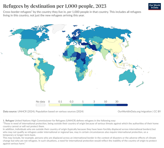 한국은 대표적인 '난민 외면' 국가다. 난민을 인정하고 수용하는 비율이 세계 최하위권이다. 2023년 기준, 인구 1000명당 거주하는 난민인정자(인도적체류 포함)는 0.078명으로 171개국 중 132위다. 30~137명 수준인 상위권 국가와는 1000배 넘는 차이다. 난민인정률은 2.7%에 불과하다. 경제협력개발기구(OECD) 주요 국가의 평균 난민인정률은 30% 정도다.