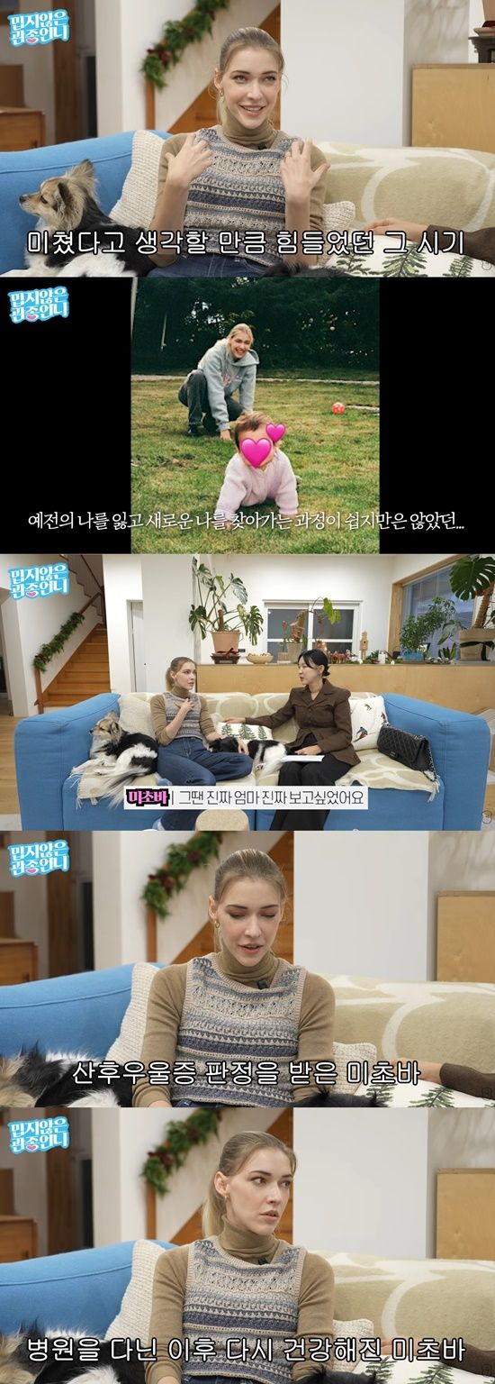 이후 미초바는 임신과 출산 등의 과정을 겪으며 쉽지 않은 순간들이 찾아왔다고 고백했다. 그는 "아이를 낳고 많이 힘들었다. 매일매일 울었다"며 "그래서 정신과를 갔다. 이렇게 힘든 게 맞냐고 물었다. 산후우울증 판정을 받았다. 병원을 다니며 다시 건강해졌다"고 말했다.