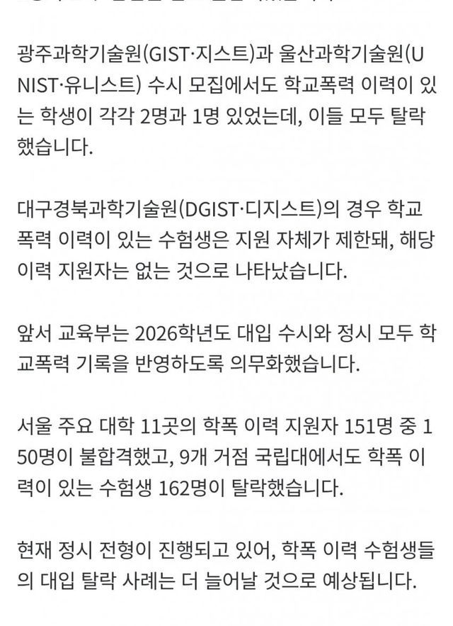 카이스트 학폭 학생 전원 불합격