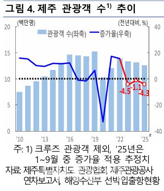 수요 측면에서 가장 큰 충격은 내국인 관광객 감소다. 팬데믹 기간 해외여행 대체수요로 제주를 찾던 내국인은 엔데믹 이후 일본 등 해외로 빠르게 이동했다. 2022년 대비 2025년 내국인 관광객 감소폭은 270만명에 달한다. 같은 기간 외국인 관광객이 140만명 늘었지만 내국인 감소분을 메우기엔 역부족인 것으로 풀이된다.